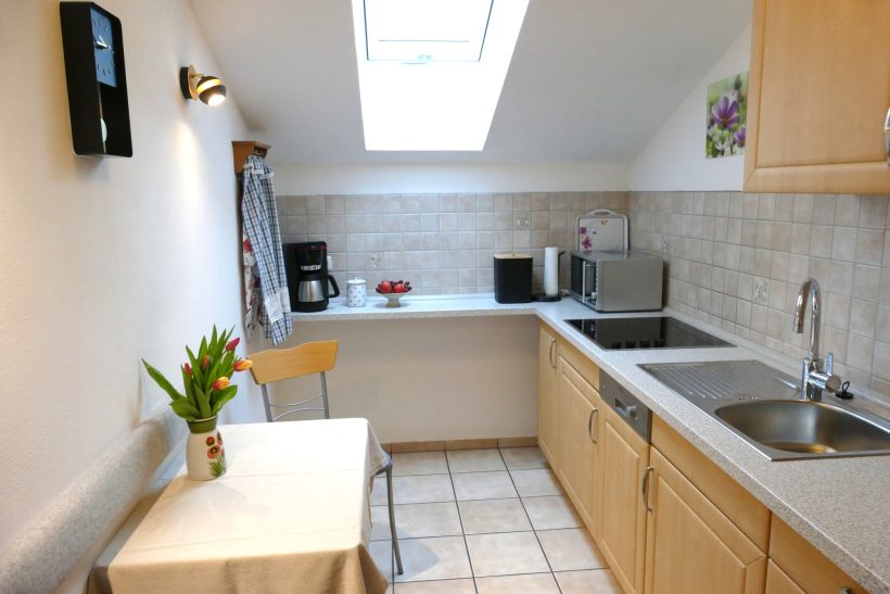 - voll ausgestattete Küche mit Geschirrspülmaschine, Kaffeemaschine, Toaster, Mikrowelle, Eierkocher